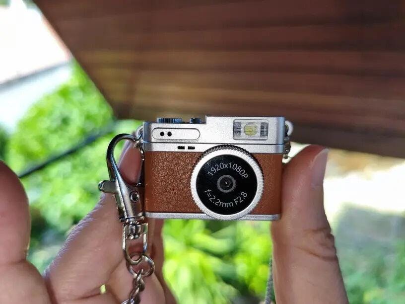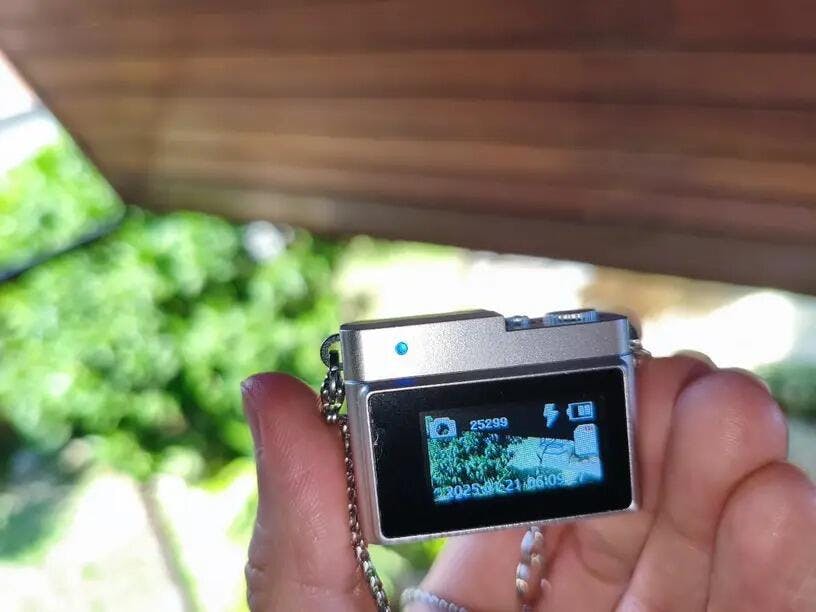 Ultra-light (≈17.5 g) with a 2.44 cm IPS preview screen and one-button controls. Point, click, done.